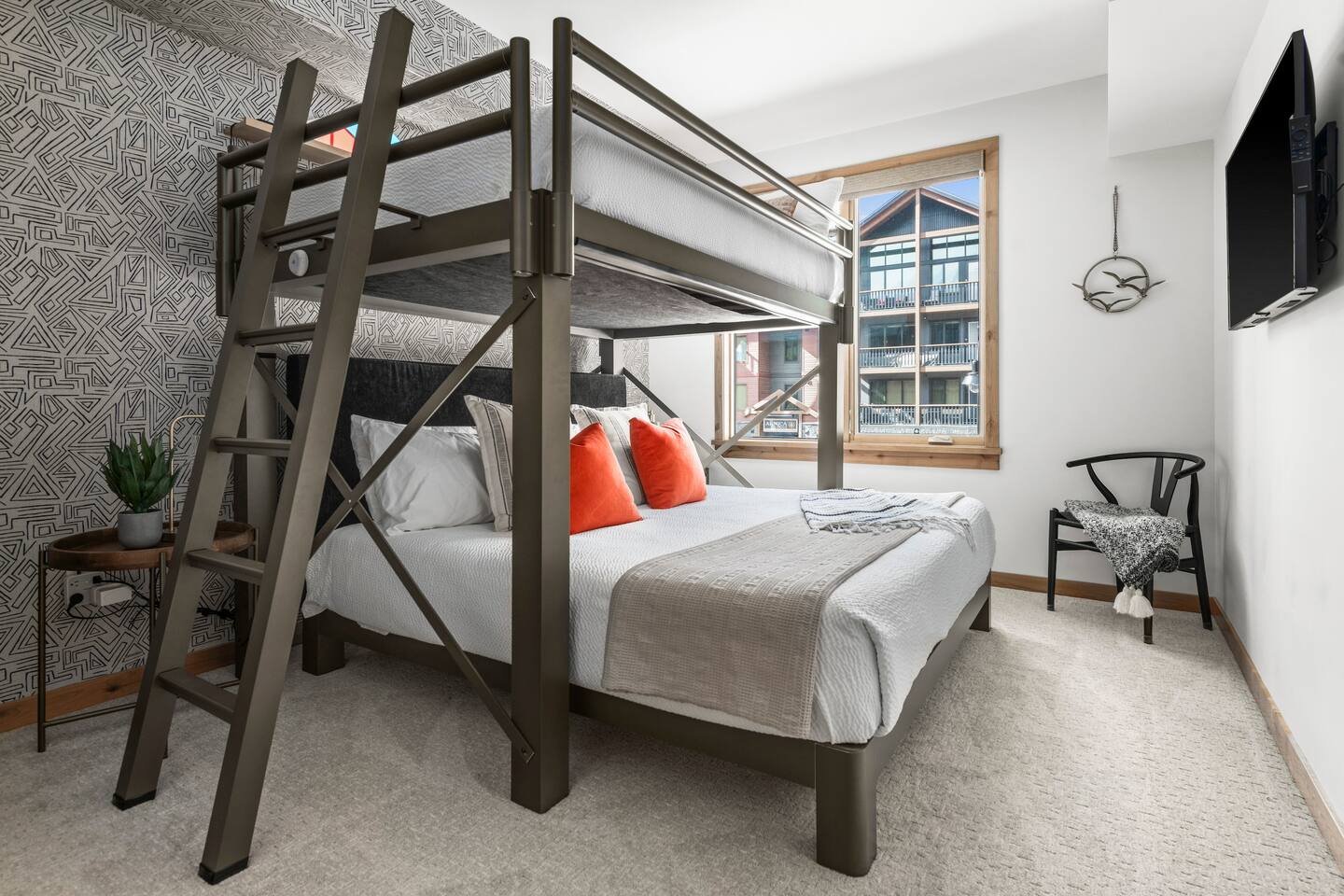 Welcome to The Nest at Canmore, a luxury condo in Spring Creek, 10 min to Banff and top ski resorts. This spacious, designer condo sleeps 7 with 2 king + 2 queen beds, including a unique queen-over-king bunk bed. Families and groups enjoy mountain views, the outdoor hot tub, cozy fireplace, heated floors, fully stocked kitchen, and family-friendly amenities. Walk to shops and restaurants, quick access to Banff, Lake Louise, and winter activities. 5-star rated for comfort, cleanliness, and style.